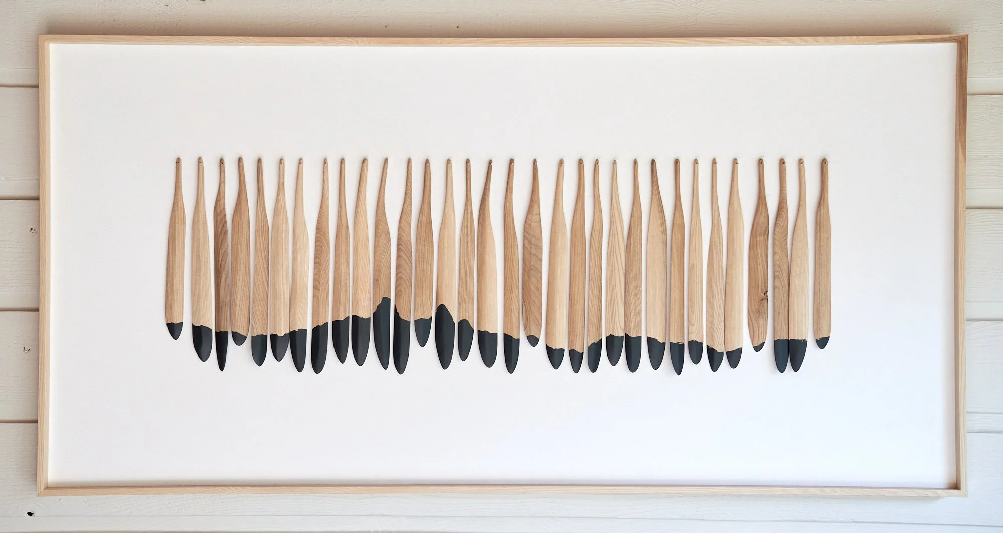Standard size for this piece is 27” X 54”. Featuring individually sculpted oversized ash seeds hung by delicate nails, the tips of the ash seeds are painted to represent a mountain scene that’s special to you! Get in touch for more details.
